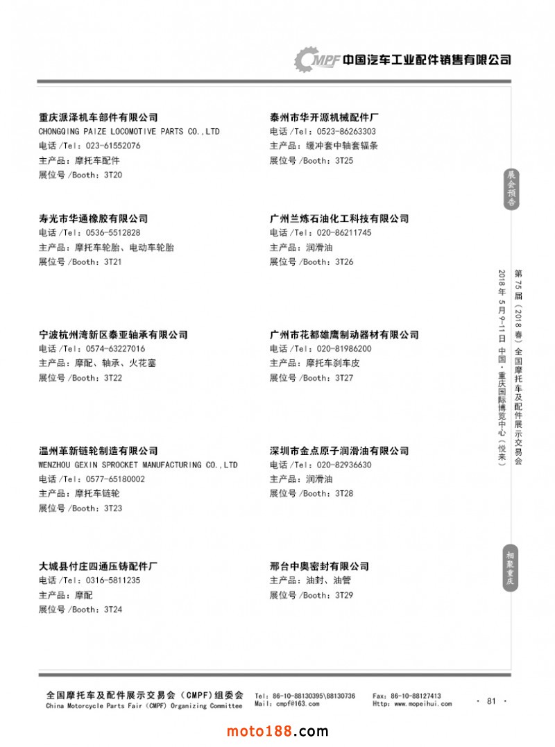 內(nèi)81 第74屆(2017秋)全國摩托車及配件展示交易會(huì)-廣州站參展企業(yè)名錄