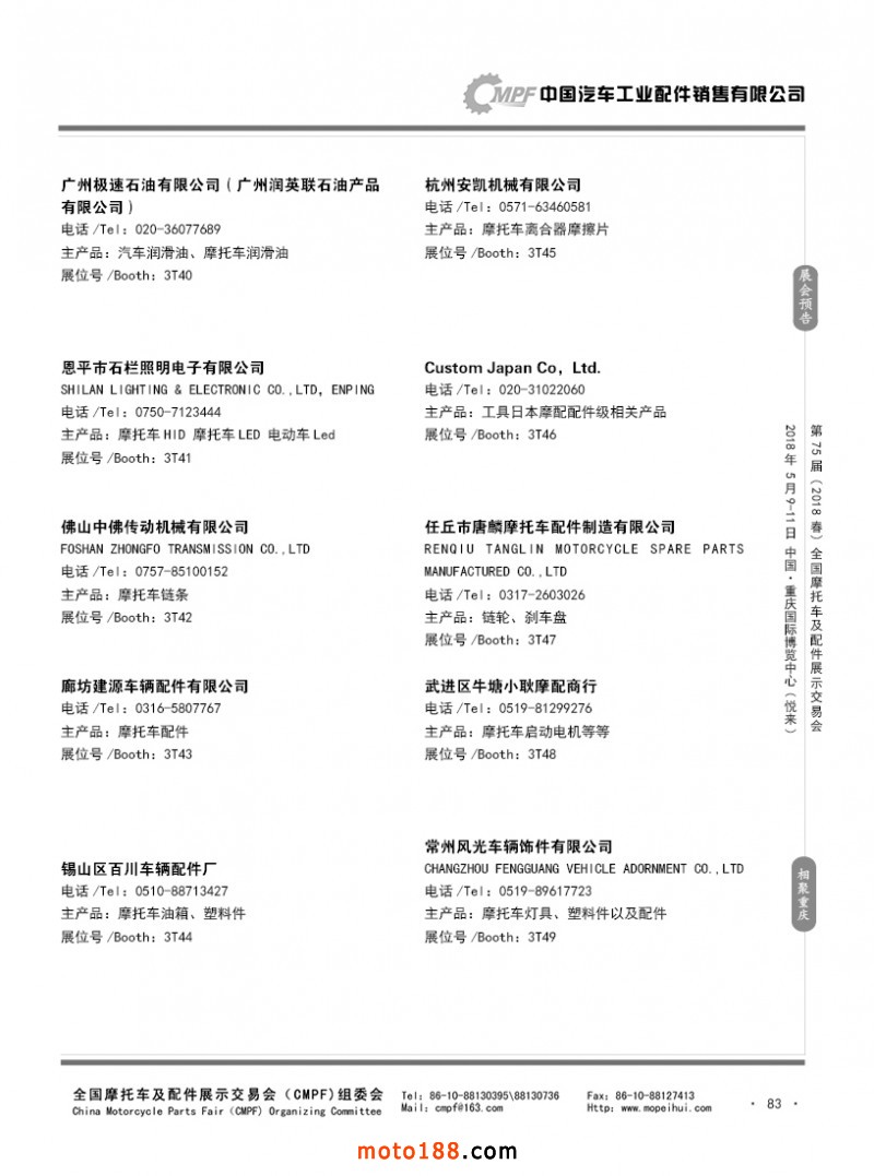 內(nèi)83 第74屆(2017秋)全國摩托車及配件展示交易會-廣州站參展企業(yè)名錄