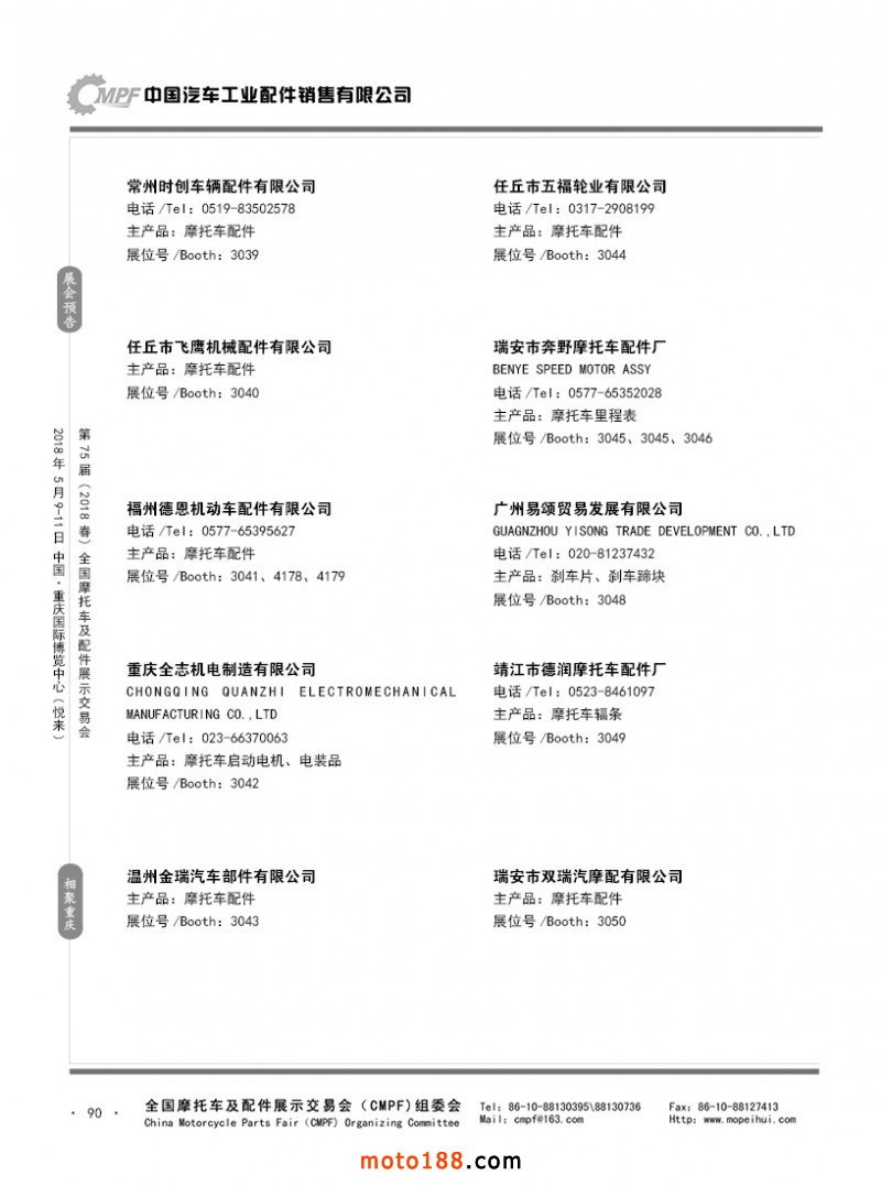 內(nèi)90 第74屆(2017秋)全國摩托車及配件展示交易會-廣州站參展企業(yè)名錄