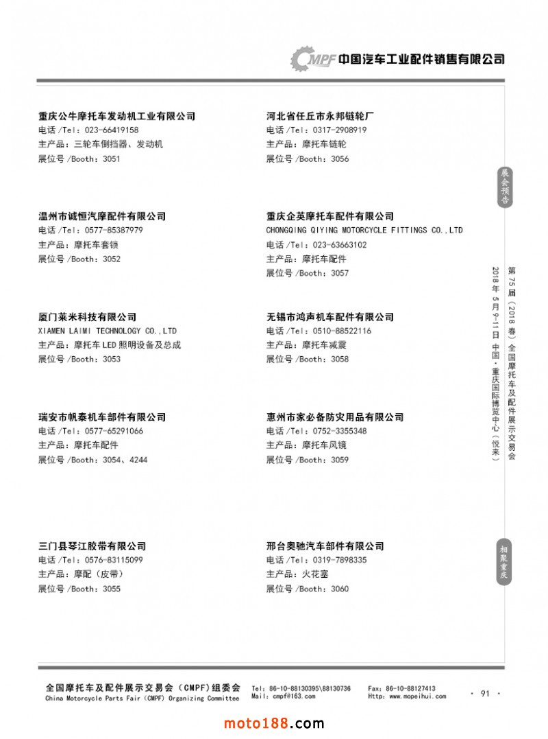 內(nèi)91 第74屆(2017秋)全國(guó)摩托車及配件展示交易會(huì)-廣州站參展企業(yè)名錄