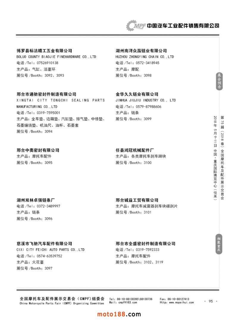 內(nèi)95 第74屆(2017秋)全國摩托車及配件展示交易會-廣州站參展企業(yè)名錄