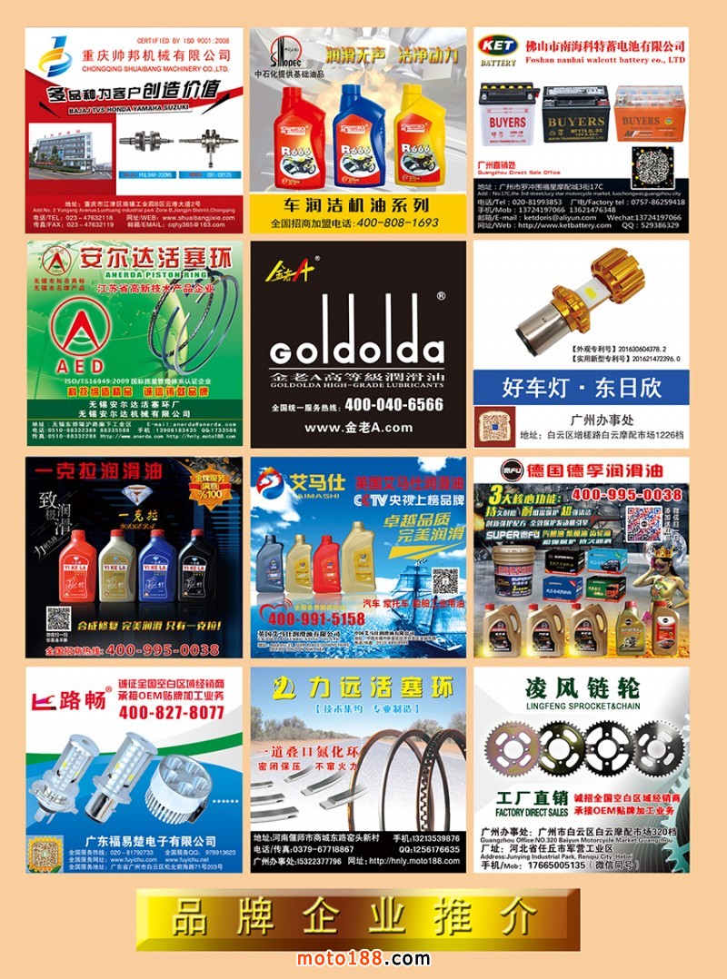 國內(nèi)首本中英文雙語《中國摩配外貿(mào)市場指南》,為從事外貿(mào)的企業(yè)提供了工具。這本書在廣州秋季全摩會(huì)上首發(fā)。還將參加明年的江門和重慶春季全摩會(huì)。歡迎行業(yè)朋友帶上名片或者手機(jī)掃二維碼,到4079展位來領(lǐng)取《中國摩配外貿(mào)市場指南》和《摩托車與配件》11期雜志。