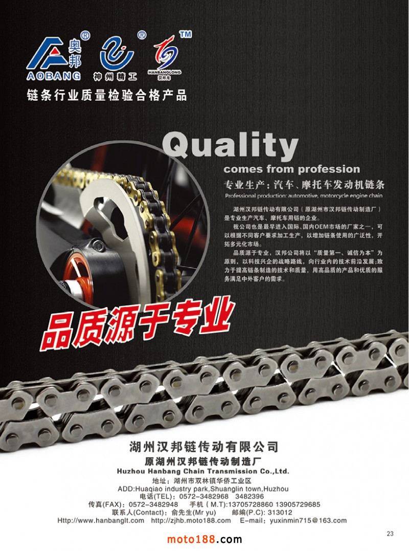 國(guó)內(nèi)首本中英文雙語(yǔ)《中國(guó)摩配外貿(mào)市場(chǎng)指南》,為從事外貿(mào)的企業(yè)提供了工具。這本書在廣州秋季全摩會(huì)上首發(fā)。還將參加明年的江門和重慶春季全摩會(huì)。歡迎行業(yè)朋友帶上名片或者手機(jī)掃二維碼,到4079展位來(lái)領(lǐng)取《中國(guó)摩配外貿(mào)市場(chǎng)指南》和《摩托車與配件》11期雜志。