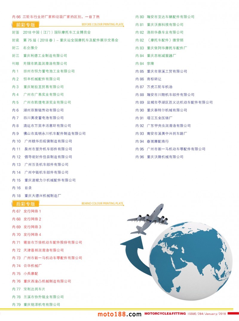 2018年已經(jīng)到了,新的一年里,我們通過(guò)成功的轉(zhuǎn)型,為未來(lái)發(fā)展奠定了良好的基礎(chǔ),外貿(mào)企業(yè)服務(wù)的應(yīng)用軟件也正在測(cè)試。18年全年出刊12期雜志(含上、下半年會(huì)刊),2月份是春節(jié),七月份是高溫季節(jié),這兩個(gè)月份停止出刊,我們將更多的時(shí)間和精力用在微信運(yùn)用和推廣及服務(wù)上,未來(lái)摩托車配件行業(yè),我們通過(guò)微營(yíng)銷《摩托車與配件》兩大品牌,為行業(yè)提供立體服務(wù),不光為企業(yè)品牌宣傳還為行業(yè)企業(yè)營(yíng)銷提供多渠道的服務(wù),直白地說(shuō)就是努力幫企業(yè)多掙錢,我們已經(jīng)走上了這條道,我們堅(jiān)定不移的走下去,同時(shí)有更好的服務(wù)的形式,我們也會(huì)告知企業(yè),讓傳統(tǒng)的經(jīng)營(yíng)插上互聯(lián)網(wǎng)的翅膀,使中國(guó)制造一帶一路走向世界,這是我們的工作重點(diǎn),也是我們雜志社的道義和責(zé)任,愿行業(yè)企業(yè)和我們攜手,共克時(shí)艱,共謀通達(dá)。