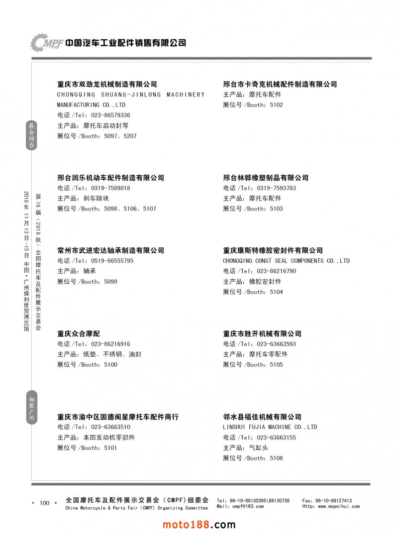 內(nèi)100 第75屆(2018春)全國摩托車及配件展示交易會-重慶站參展企業(yè)信息