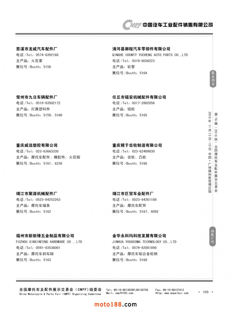 內(nèi)105 第75屆(2018春)全國摩托車及配件展示交易會-重慶站參展企業(yè)信息