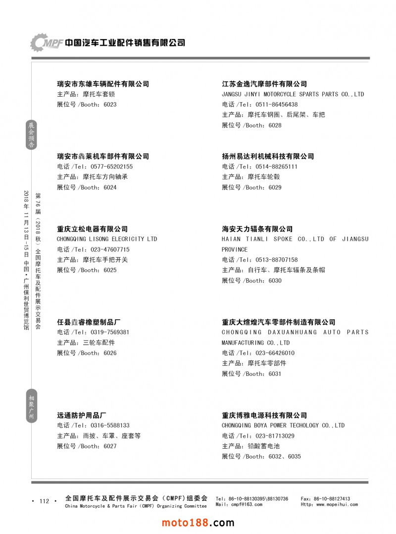 內(nèi)112 第75屆(2018春)全國摩托車及配件展示交易會-重慶站參展企業(yè)信息