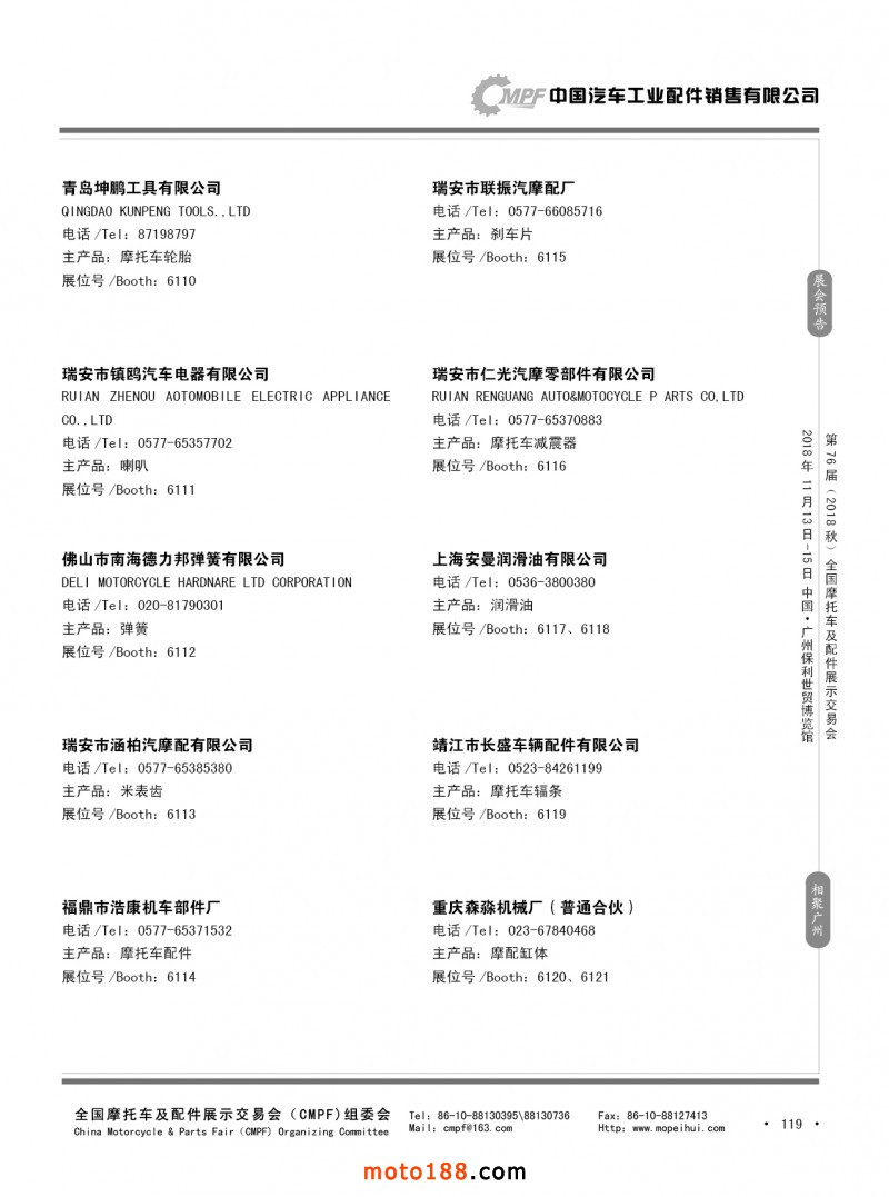 內(nèi)119 第75屆(2018春)全國(guó)摩托車(chē)及配件展示交易會(huì)-重慶站參展企業(yè)信息