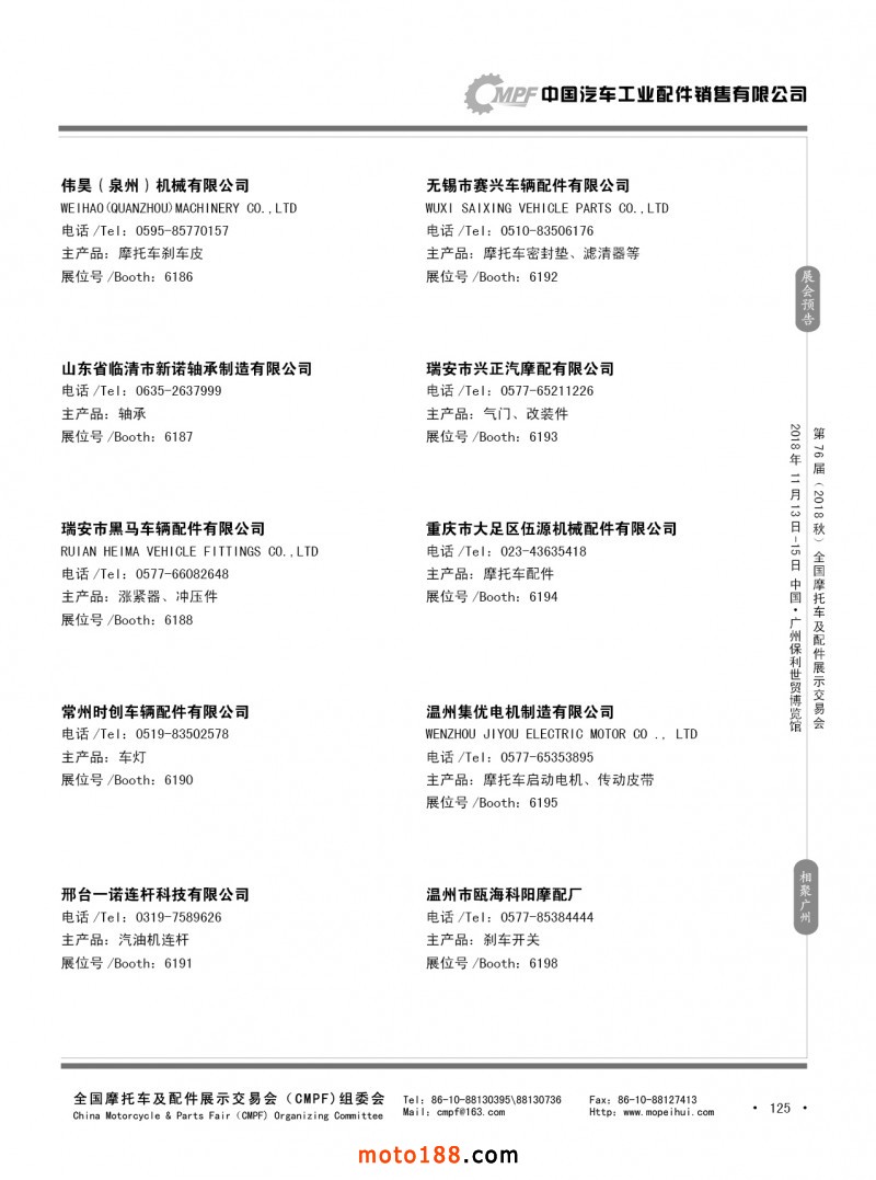 內(nèi)125 第75屆(2018春)全國摩托車及配件展示交易會-重慶站參展企業(yè)信息