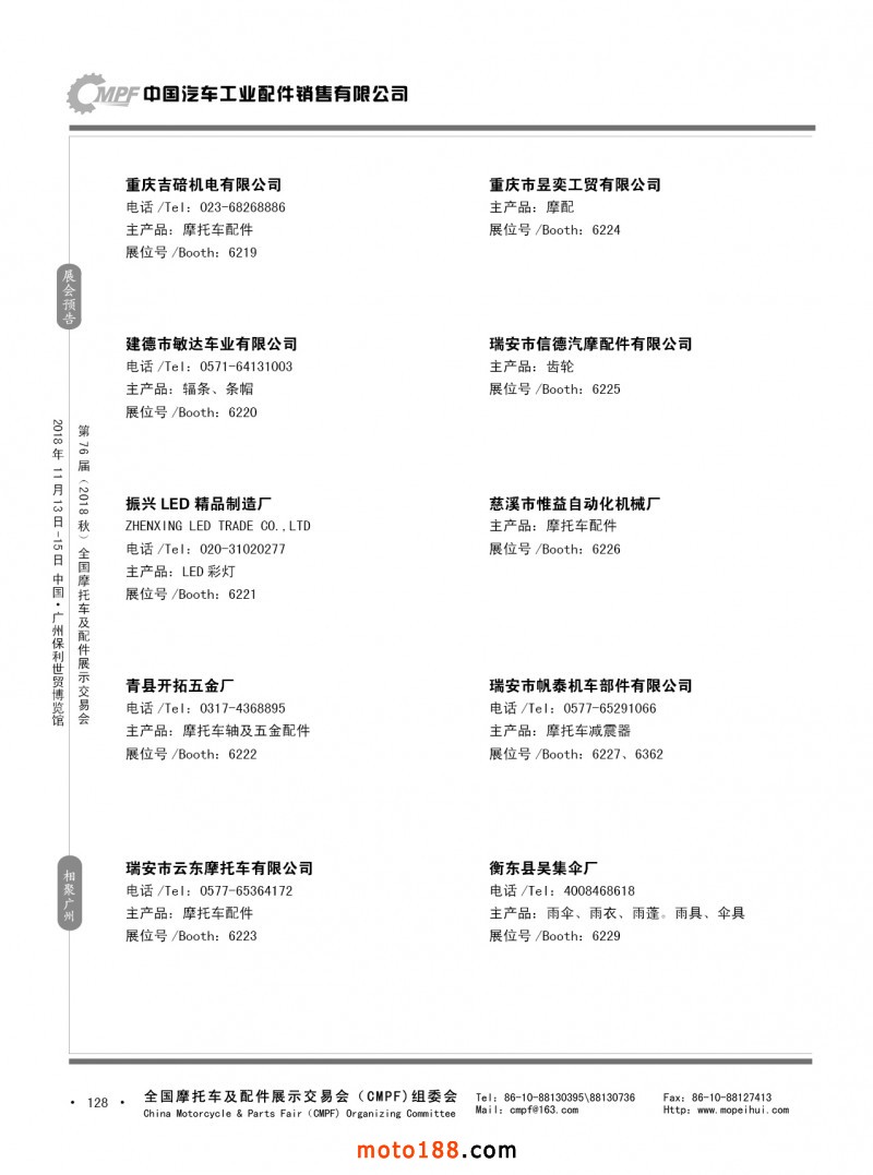 內(nèi)128 第75屆(2018春)全國摩托車及配件展示交易會-重慶站參展企業(yè)信息