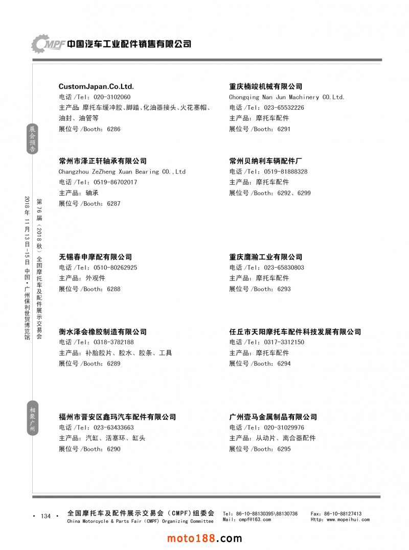 內(nèi)134 第75屆(2018春)全國(guó)摩托車(chē)及配件展示交易會(huì)-重慶站參展企業(yè)信息