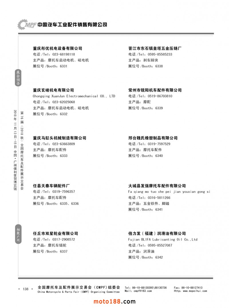內(nèi)138 第75屆(2018春)全國摩托車及配件展示交易會(huì)-重慶站參展企業(yè)信息
