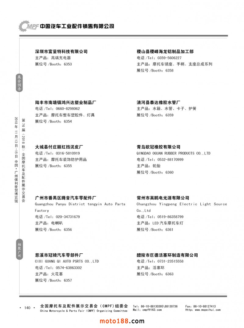 內(nèi)140 第75屆(2018春)全國(guó)摩托車(chē)及配件展示交易會(huì)-重慶站參展企業(yè)信息