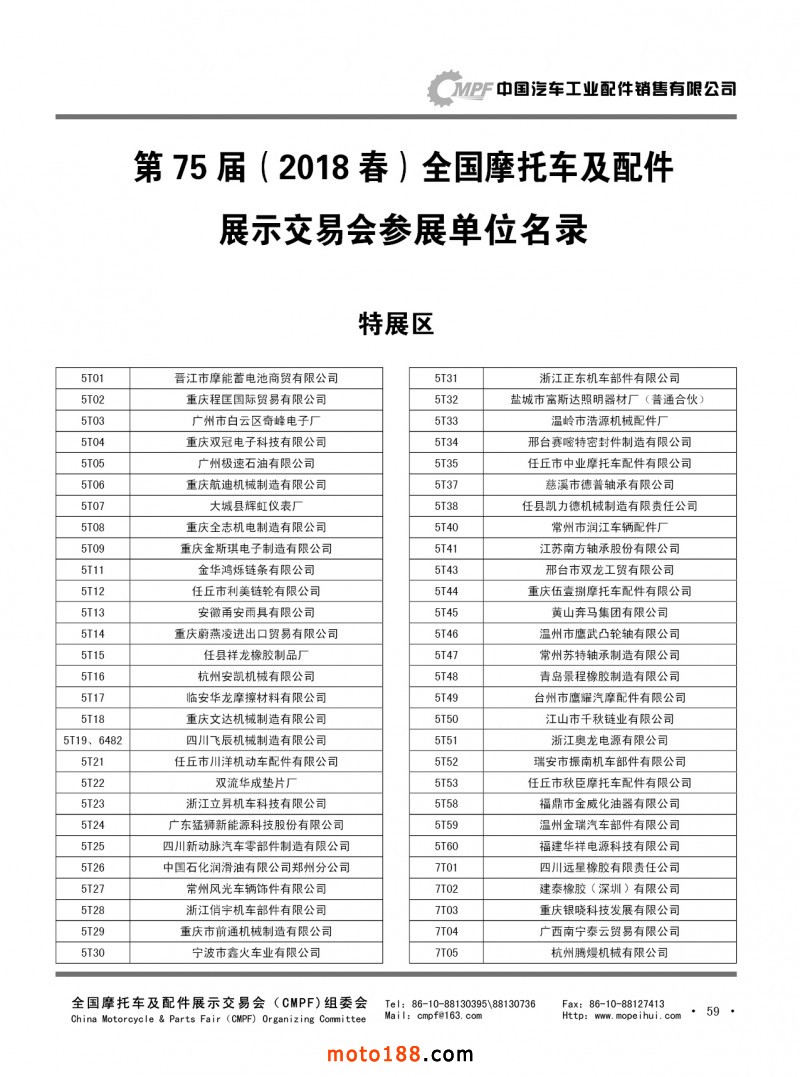 內59 第75屆(2018春)全國摩托車及配件展示交易會-重慶站參展單位名錄