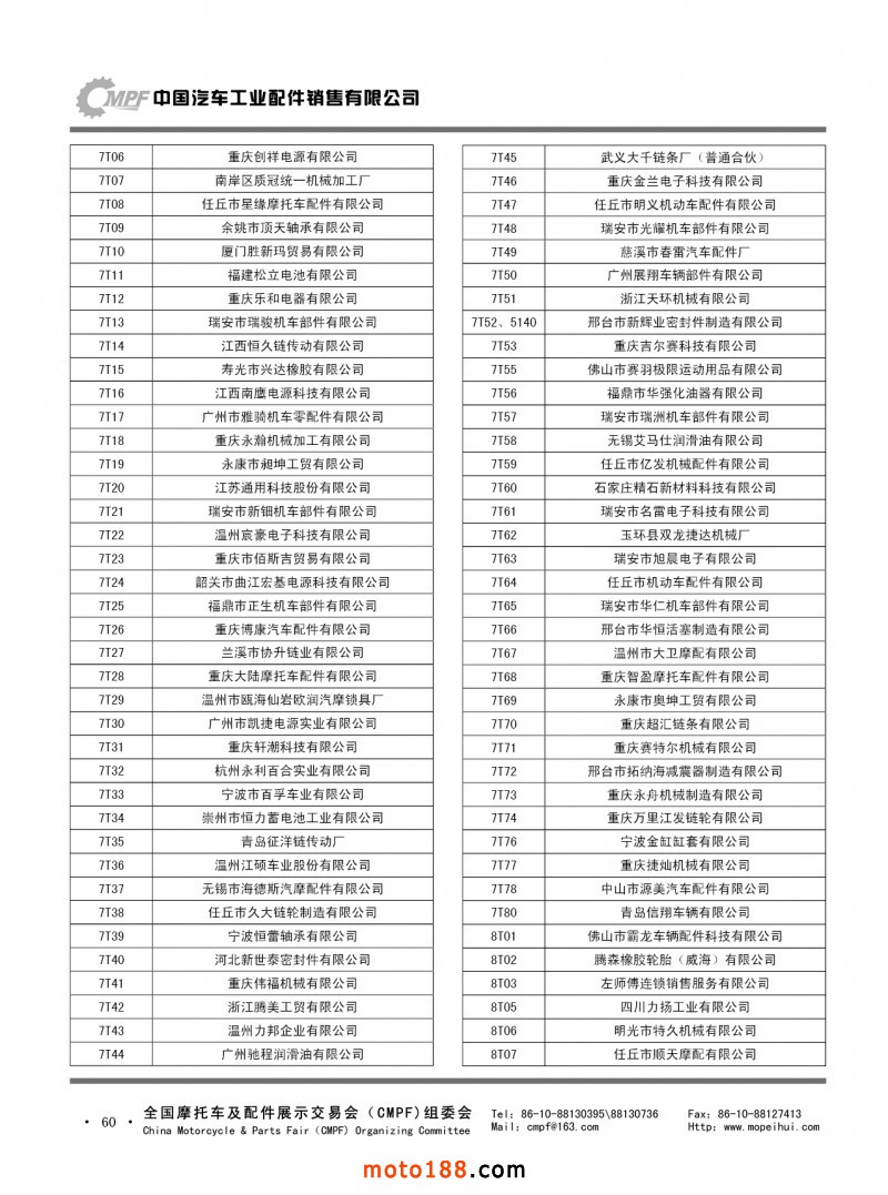 內(nèi)60 第75屆(2018春)全國(guó)摩托車及配件展示交易會(huì)-重慶站參展單位名錄
