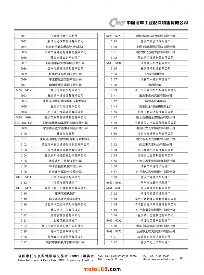 內(nèi)63 第75屆(2018春)全國摩托車及配件展示交易會-重慶站參展單位名錄