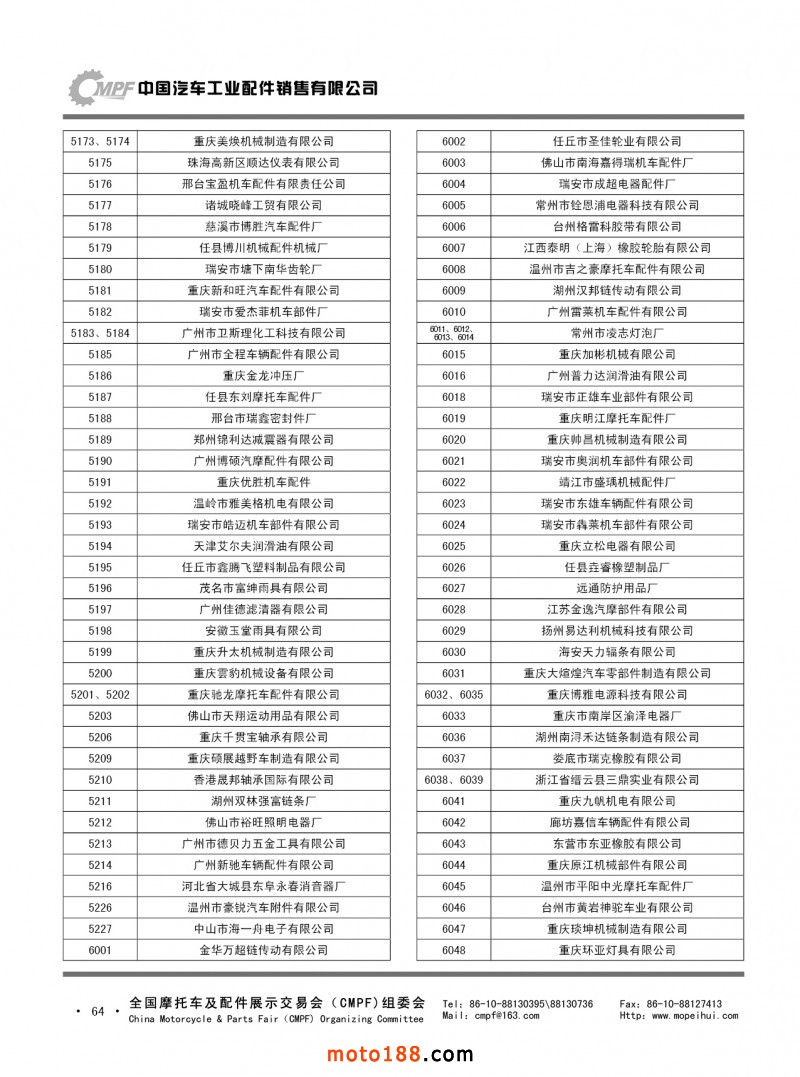 內(nèi)64 第75屆(2018春)全國摩托車及配件展示交易會-重慶站參展單位名錄
