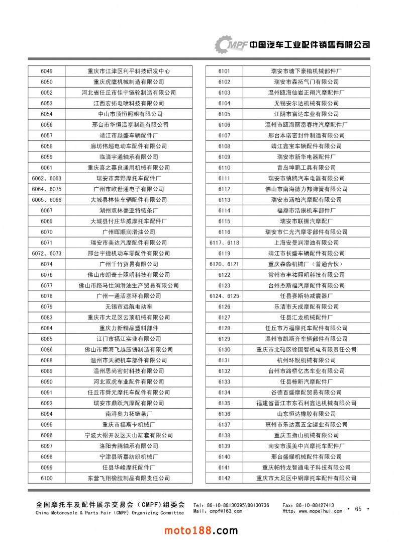 內(nèi)65 第75屆(2018春)全國摩托車及配件展示交易會(huì)-重慶站參展單位名錄