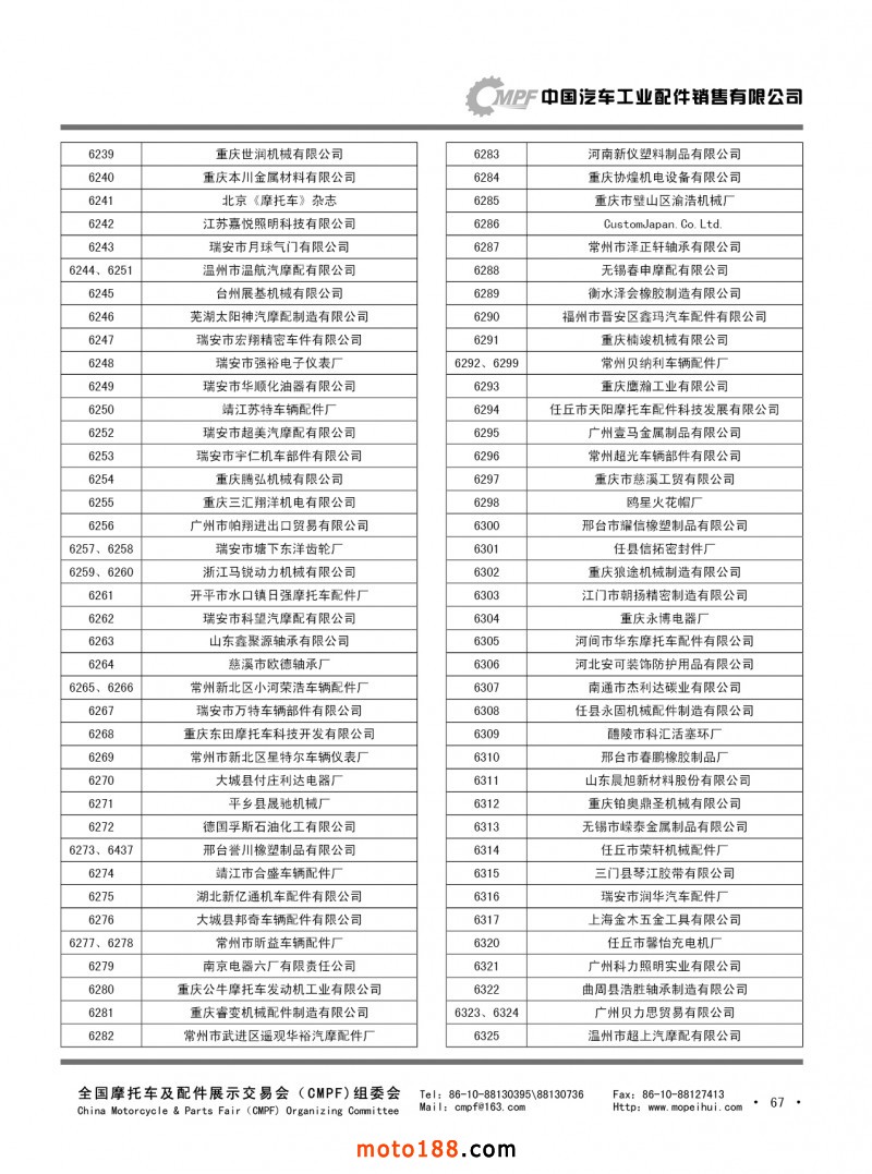內(nèi)67 第75屆(2018春)全國(guó)摩托車及配件展示交易會(huì)-重慶站參展單位名錄