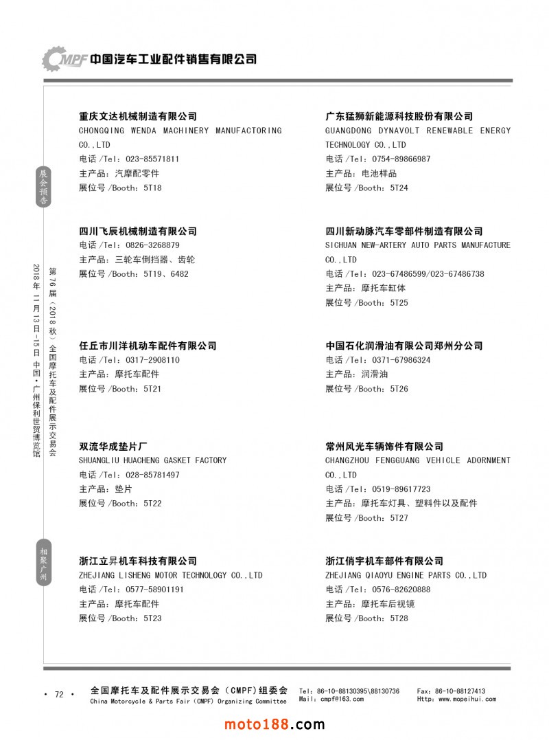 內(nèi)72 第75屆(2018春)全國摩托車及配件展示交易會(huì)-重慶站參展企業(yè)信息