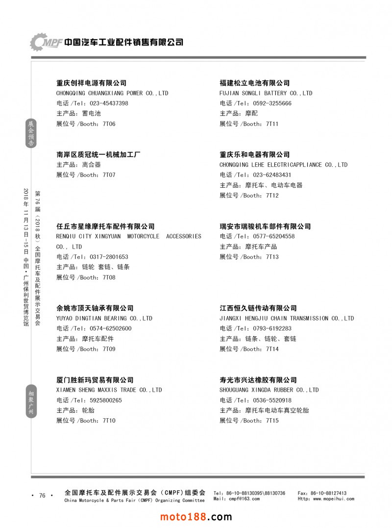 內(nèi)76 第75屆(2018春)全國(guó)摩托車及配件展示交易會(huì)-重慶站參展企業(yè)信息