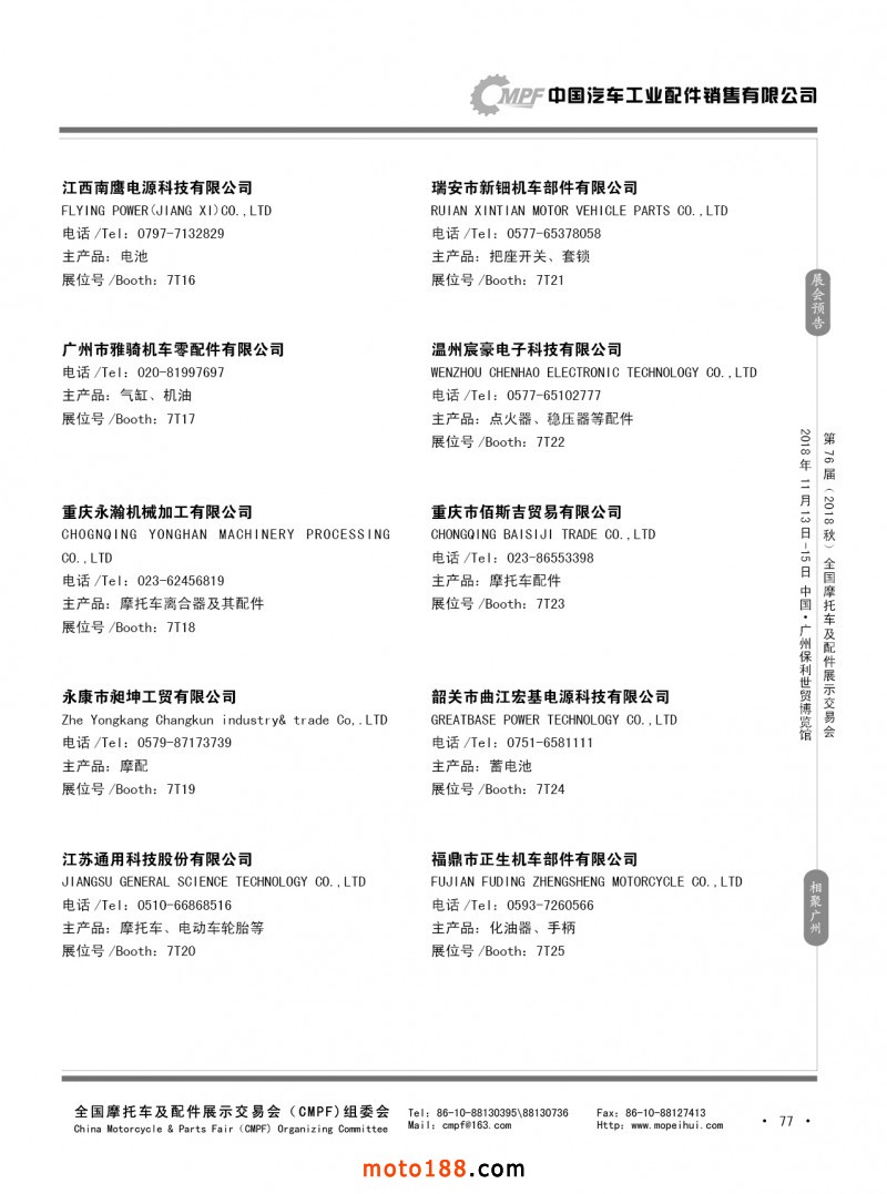 內(nèi)77 第75屆(2018春)全國摩托車及配件展示交易會-重慶站參展企業(yè)信息