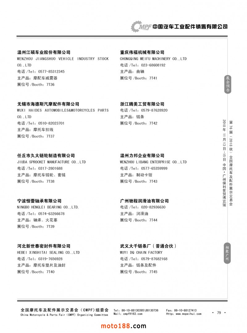 內(nèi)79 第75屆(2018春)全國(guó)摩托車及配件展示交易會(huì)-重慶站參展企業(yè)信息