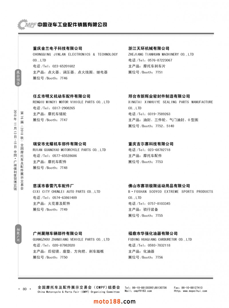 內(nèi)80 第75屆(2018春)全國摩托車及配件展示交易會-重慶站參展企業(yè)信息
