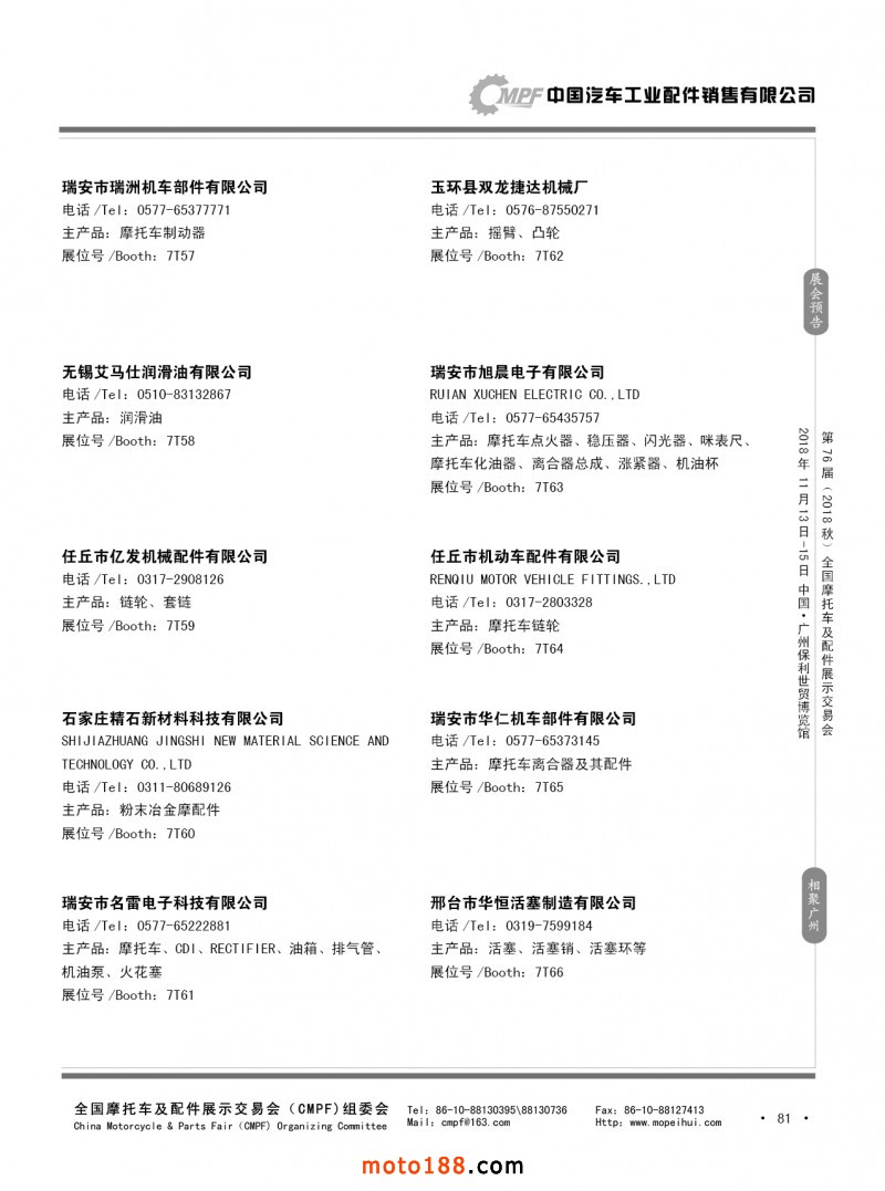內(nèi)81 第75屆(2018春)全國(guó)摩托車(chē)及配件展示交易會(huì)-重慶站參展企業(yè)信息