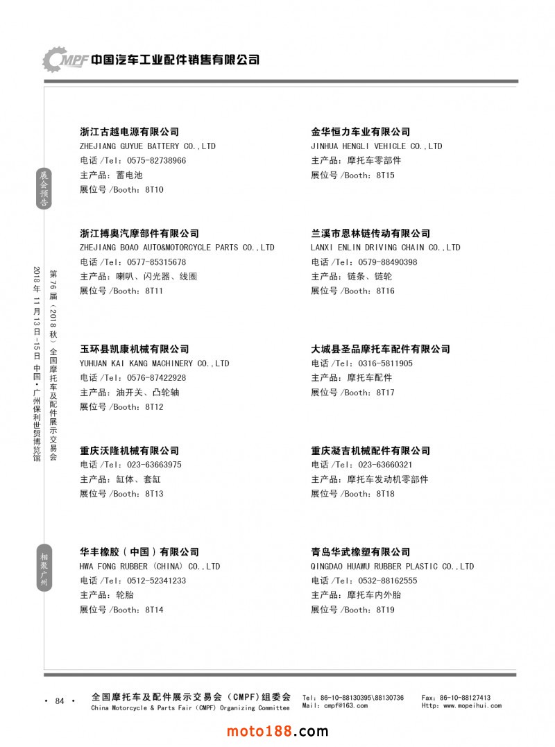 內(nèi)84 第75屆(2018春)全國摩托車及配件展示交易會-重慶站參展企業(yè)信息