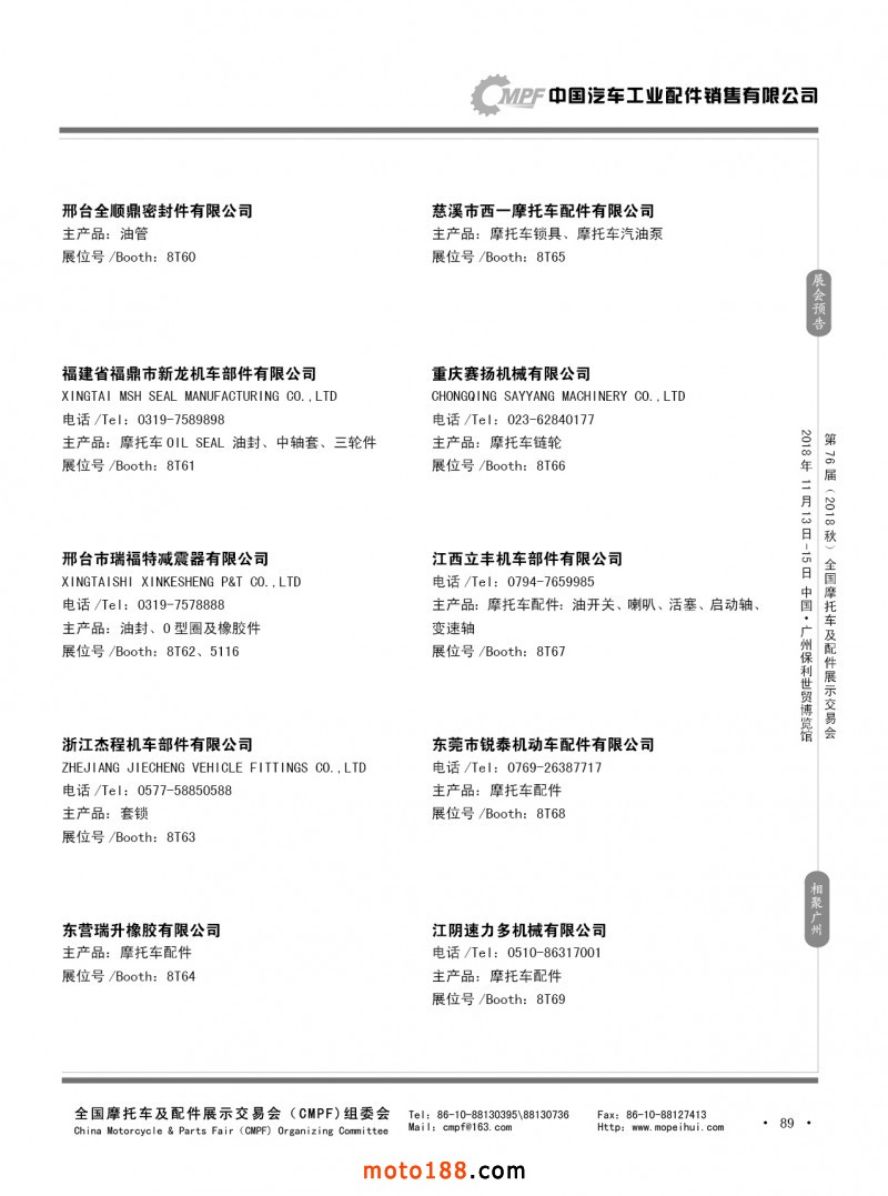 內(nèi)89 第75屆(2018春)全國摩托車及配件展示交易會(huì)-重慶站參展企業(yè)信息