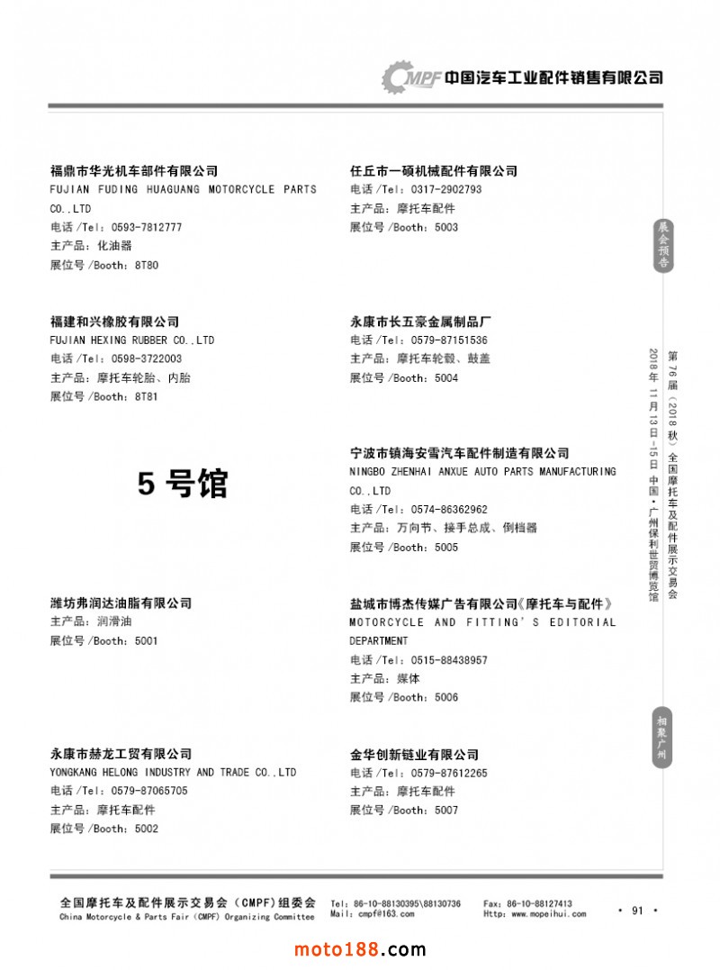 內(nèi)91 第75屆(2018春)全國(guó)摩托車及配件展示交易會(huì)-重慶站參展企業(yè)信息