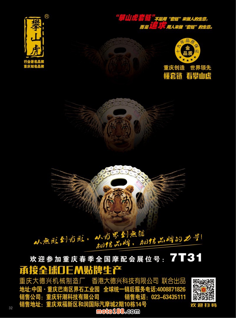 重慶展會我們的展位在5006,歡迎參會的企業(yè)來我們展位領取雜志和《全國摩配市場外貿指南》,同時也希望廣大的參展企業(yè),能在會上有一個較好的收獲,春天播種希望,秋天收獲成功。