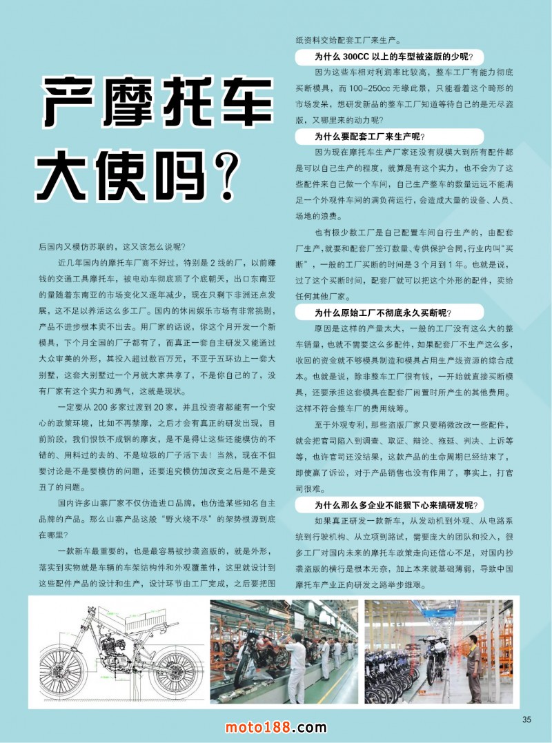 2018.5月《摩托車/電動車與配件》雜志,歡迎大家閱讀日期:2018-04-25 點擊:1896 查看原圖 全部展開![]() ![]() ![]() 內(nèi)35 山寨是國產(chǎn)摩托車的形象大使嗎?