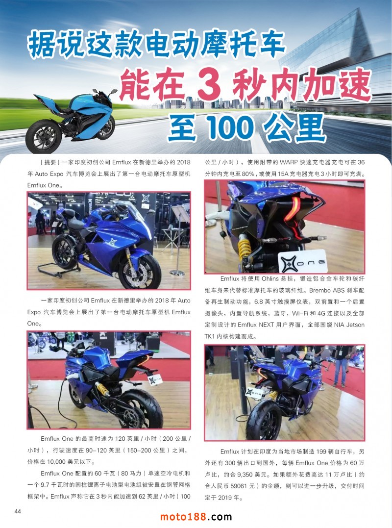 2018.5月《摩托車/電動車與配件》雜志,歡迎大家閱讀日期:2018-04-25 點擊:1896 查看原圖 全部展開![]() ![]() ![]() 內(nèi)44 據(jù)說這款電動摩托車能在3秒內(nèi)加速至100公里