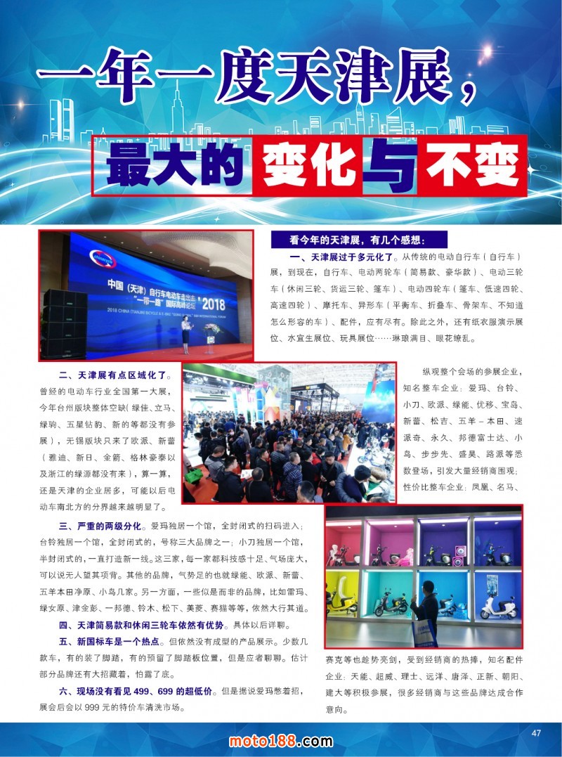 2018.5月《摩托車/電動車與配件》雜志,歡迎大家閱讀日期:2018-04-25 點(diǎn)擊:1896 查看原圖 全部展開![]() ![]() ![]() 內(nèi) 47 一年一度天津展,最大的變化與不變