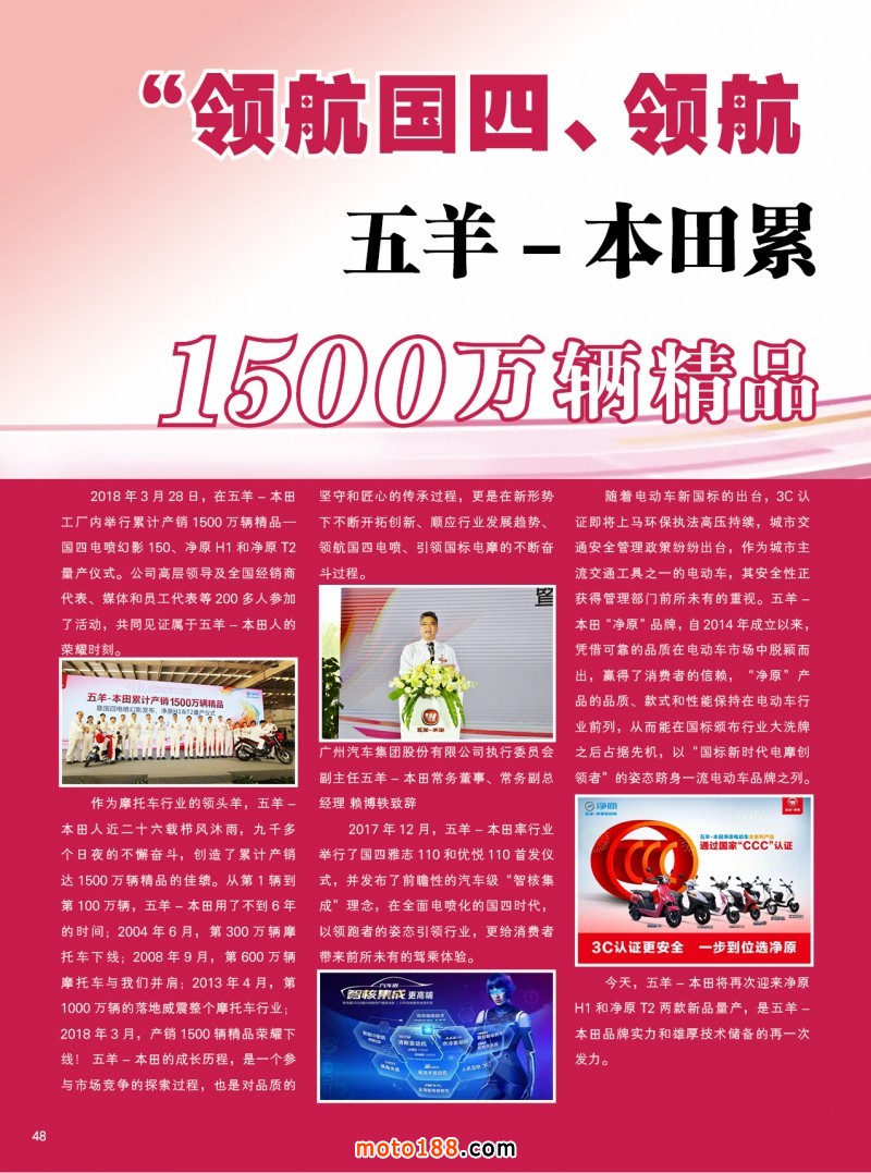 2018.5月《摩托車/電動車與配件》雜志,歡迎大家閱讀日期:2018-04-25 點擊:1896 查看原圖 全部展開![]() ![]() ![]() 內(nèi)48 “領(lǐng)航國四、領(lǐng)航電噴、領(lǐng)航電動”五羊-本田累計產(chǎn)銷1500萬輛精品