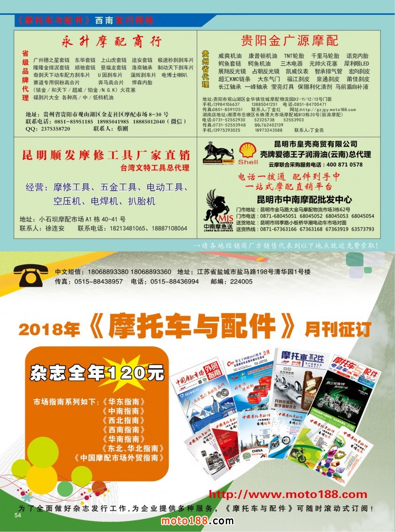 2018.5月《摩托車(chē)/電動(dòng)車(chē)與配件》雜志,歡迎大家閱讀日期:2018-04-25 點(diǎn)擊:1896 查看原圖 全部展開(kāi)![]() ![]() ![]() 內(nèi)54 發(fā)行網(wǎng)絡(luò)4