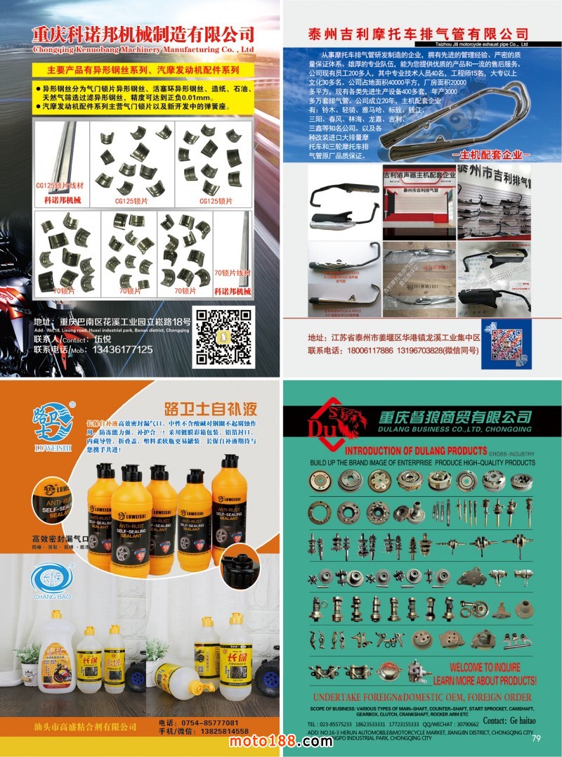 2018.5月《摩托車/電動(dòng)車與配件》雜志,歡迎大家閱讀日期:2018-04-25 點(diǎn)擊:1895 查看原圖 全部展開![]() ![]() ![]() 內(nèi) 79 重慶科諾邦機(jī)械制造有限公司