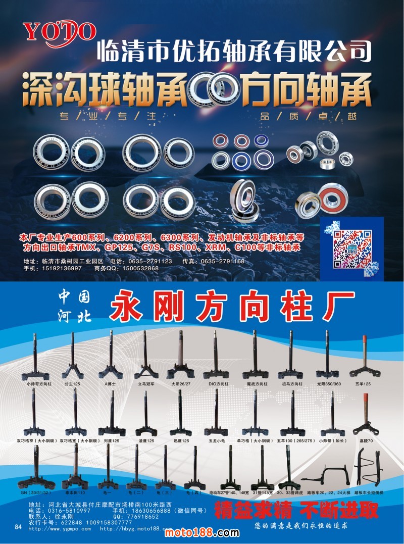 2018.5月《摩托車/電動車與配件》雜志,歡迎大家閱讀日期:2018-04-25 點擊:1895 查看原圖 全部展開![]() ![]() ![]() 內(nèi) 84 臨清市優(yōu)拓軸承有限公司