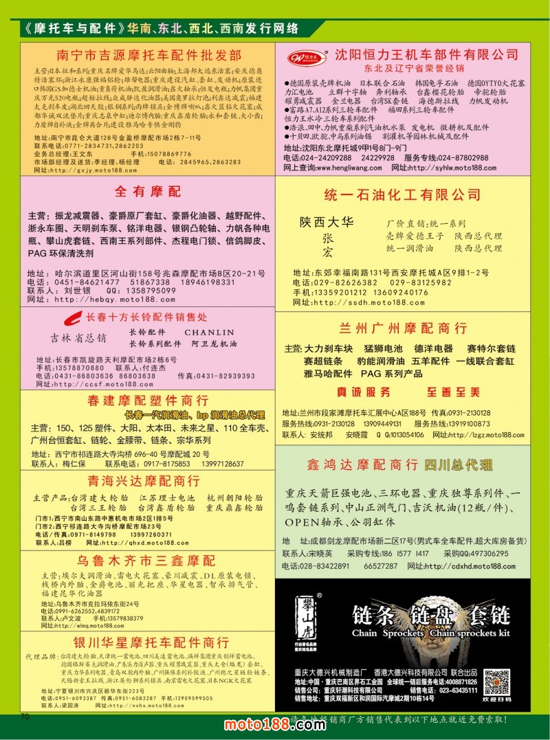 本期雜志我們也對(duì)版面進(jìn)行了較大的改革:增加欄目,按比例的增加相關(guān)的內(nèi)容,見本期雜志,以后雜志將摩配、電動(dòng)車、通機(jī)等集于一體發(fā)布;擴(kuò)大雜志在這些行業(yè)的發(fā)行,通過互聯(lián)網(wǎng)工具和全國(guó)及地方性的專題交易會(huì)切入到這些行業(yè);一線走訪主產(chǎn)區(qū)及地方性的重要市場(chǎng),實(shí)地了解市場(chǎng)布局及經(jīng)營(yíng)情況;目前我們對(duì)現(xiàn)有的數(shù)據(jù)庫(kù),進(jìn)行重新的核對(duì),對(duì)網(wǎng)站進(jìn)行改版,雜志內(nèi)容也作了調(diào)整,吸納這些企業(yè)為好友,并每天都有一定的數(shù)量要求,這是一項(xiàng)長(zhǎng)期的基礎(chǔ)性的工作。工作策略是:從進(jìn)入往縱深發(fā)展,用時(shí)間換取空間。