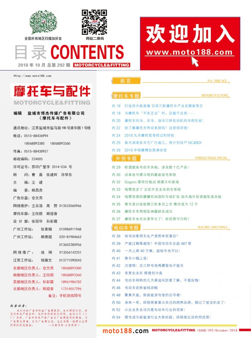 隨著運(yùn)作的不斷成熟,新媒體也將逐步的取代傳統(tǒng)的紙媒,今年我們已經(jīng)逐步的有計(jì)劃的減少雜志的出刊期數(shù),明年計(jì)劃再壓縮出刊期數(shù),適當(dāng)減少廣告的版面,突出雜志的內(nèi)容,將雜志辦成典藏版的精品,而不再像以往一看就扔;將摩托車及配件,小型通用機(jī)械及配件,電動(dòng)二三四輪車及配件等相關(guān)行業(yè)的重要信息作重點(diǎn)發(fā)布,使雜志更具有閱讀或收藏價(jià)值,實(shí)時(shí)傳遞發(fā)布有關(guān)行業(yè)的產(chǎn)業(yè)政策、權(quán)威數(shù)據(jù)、新技術(shù)及??鴥?nèi)外的市場(chǎng)動(dòng)態(tài)、行業(yè)會(huì)議、熱點(diǎn)新聞,增加行業(yè)優(yōu)秀企業(yè)專題,增加原創(chuàng)稿件,使雜志具有一定的輿論導(dǎo)向,權(quán)威性丶收藏性、獨(dú)特性、可讀性這是明年雜志必須具備的特點(diǎn)。
