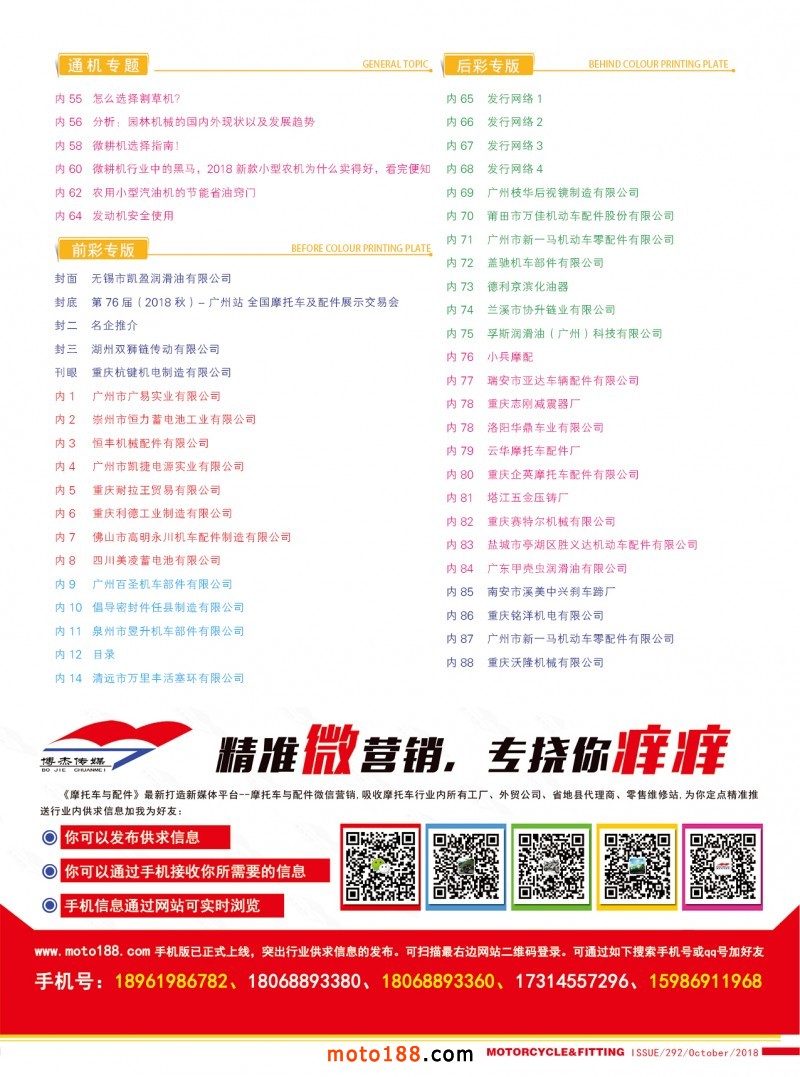 秋季廣州全摩會召開在即,《摩配華南市場指南》升級版,將在下半年第76屆廣州全國摩托車及配件展示交易會首發(fā),歡迎參展企業(yè)和參展觀眾到3109展位領(lǐng)??;隨后在廣州、重慶摩配市場全面派送,在廣州福星、松南市場門口、及白云210/002/607三個檔口常年設(shè)立發(fā)行窗口;發(fā)行至廣州、重慶、江浙的幾大板塊主要廠家,需要在最新《華南市場指南》升級版做宣傳的企業(yè),請盡快和我們以及各地的工作站人員聯(lián)絡(luò),截稿在即,時不我待。