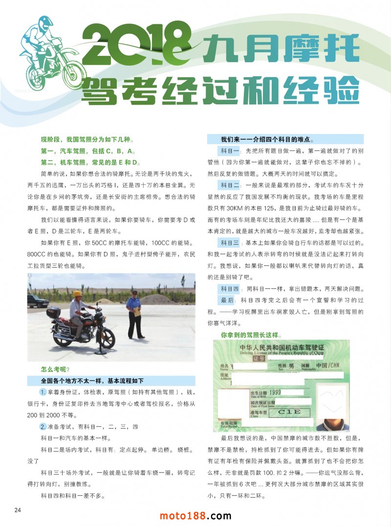 2018.10月《摩托車/電動(dòng)車與配件》雜志,歡迎大家閱讀日期:2018-09-28 點(diǎn)擊:1535 查看原圖 全部展開![]() ![]() ![]() 內(nèi)24 2018九月摩托駕考經(jīng)過(guò)和經(jīng)驗(yàn)