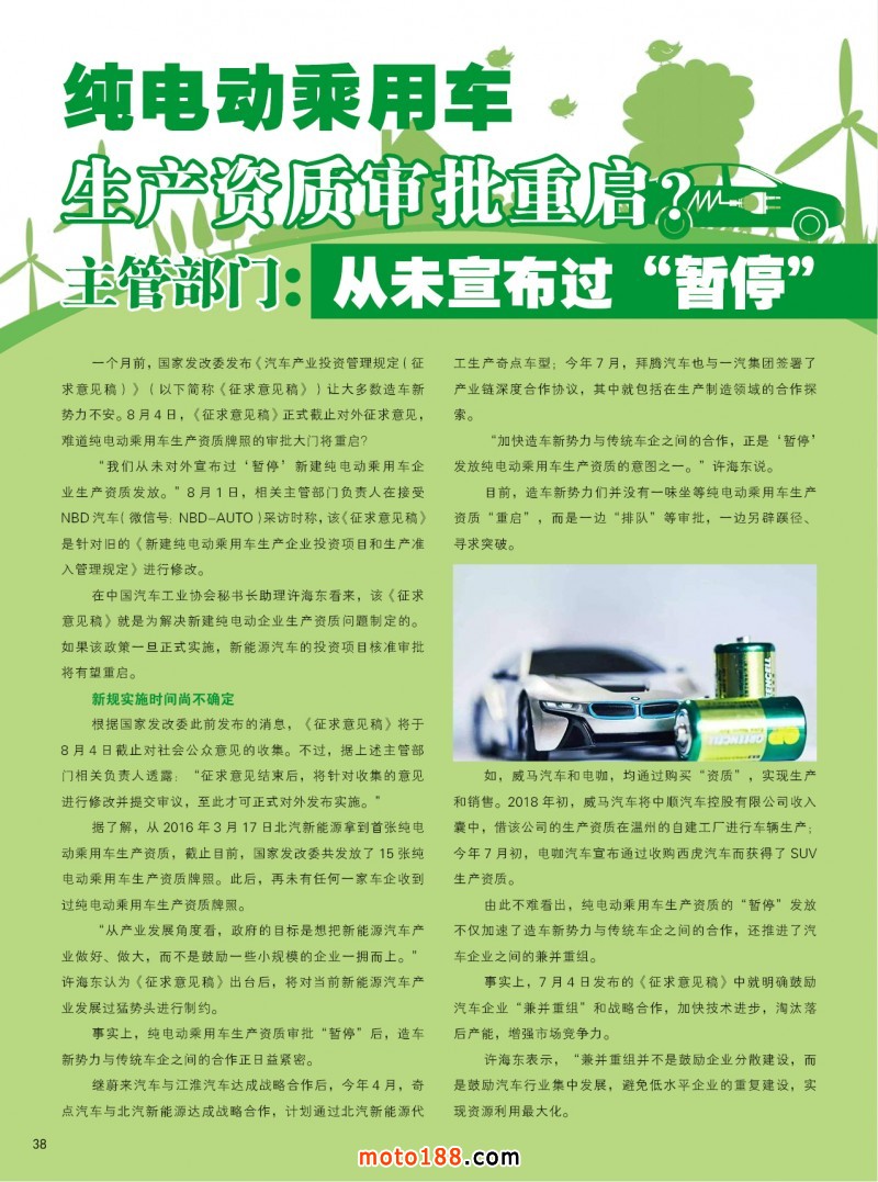 2018.10月《摩托車/電動車與配件》雜志,歡迎大家閱讀日期:2018-09-28 點擊:1535 查看原圖 全部展開![]() ![]() ![]() 內(nèi)38 純電動乘用車生產(chǎn)資質(zhì)審批重啟?