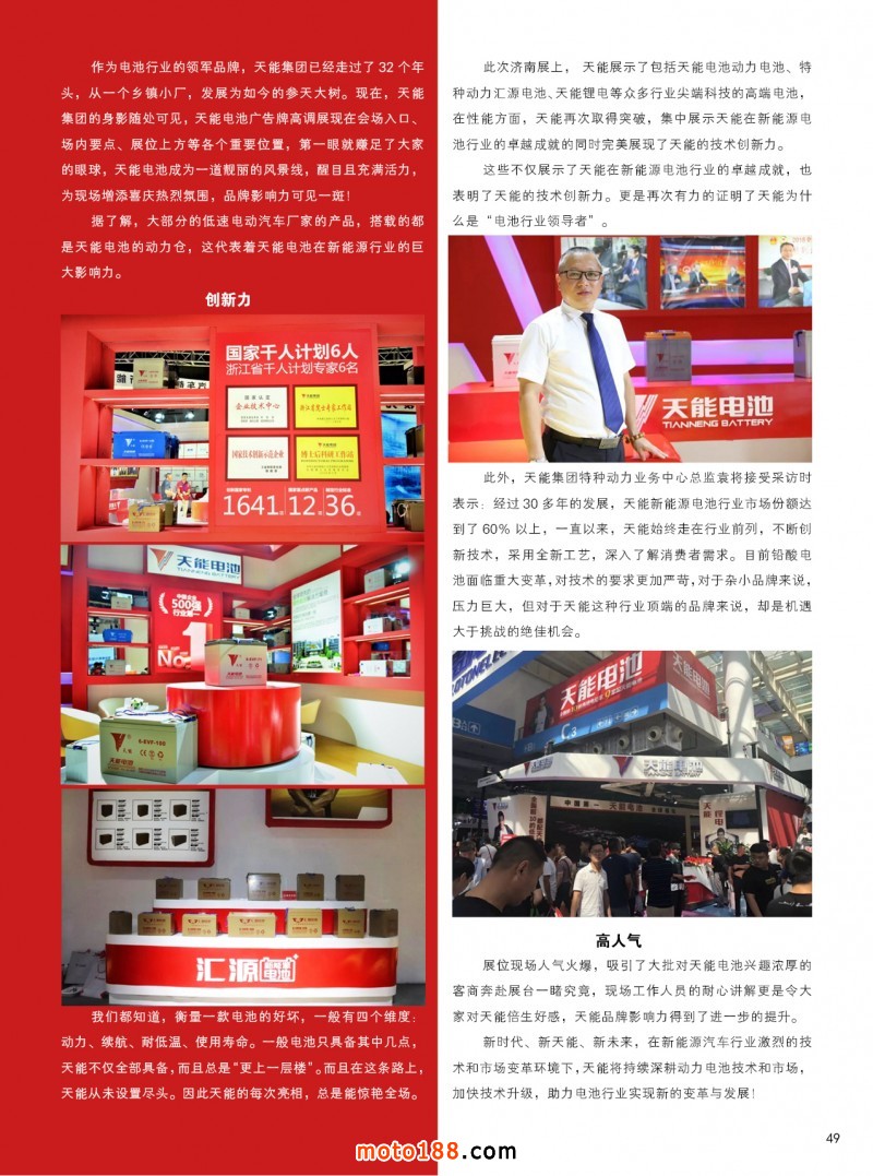 2018.10月《摩托車(chē)/電動(dòng)車(chē)與配件》雜志,歡迎大家閱讀日期:2018-09-28 點(diǎn)擊:1535 查看原圖 全部展開(kāi)![]() ![]() ![]() 內(nèi)49 聚焦天能,做新能源電池的引導(dǎo)者!