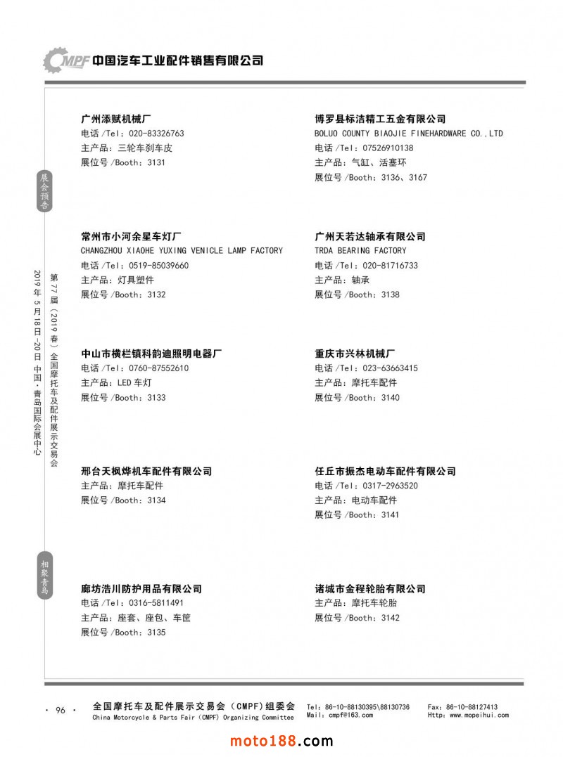 內(nèi)96 第76屆(2018秋)全國(guó)摩托車及配件展示交易會(huì)-廣州站參展企業(yè)信息
