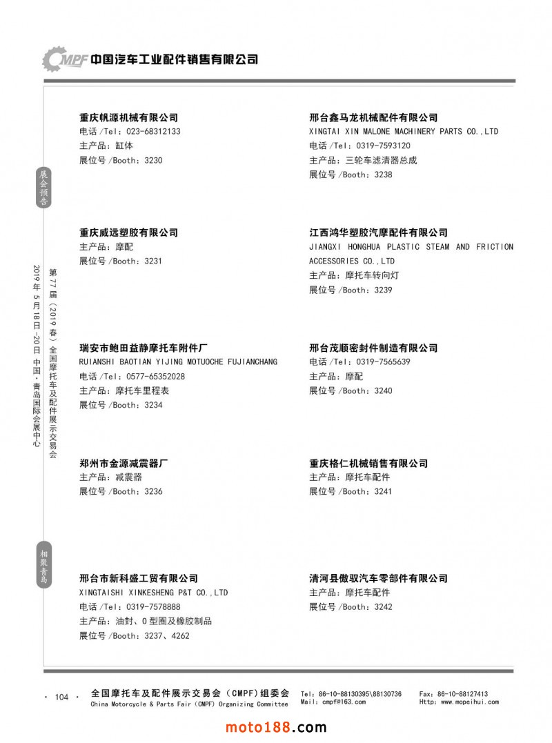 內(nèi)104 第76屆(2018秋)全國摩托車及配件展示交易會-廣州站參展企業(yè)信息