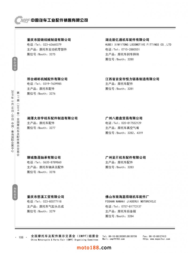 內(nèi)108 第76屆(2018秋)全國摩托車及配件展示交易會-廣州站參展企業(yè)信息