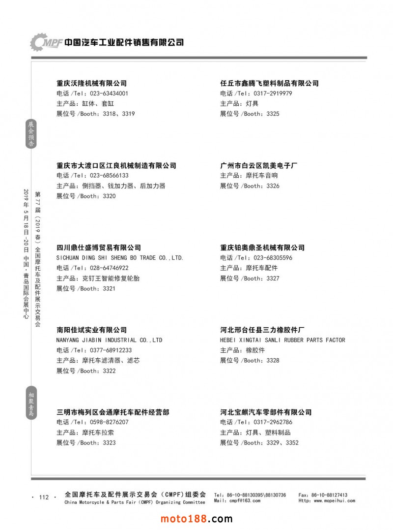 內(nèi)112 第76屆(2018秋)全國(guó)摩托車及配件展示交易會(huì)-廣州站參展企業(yè)信息